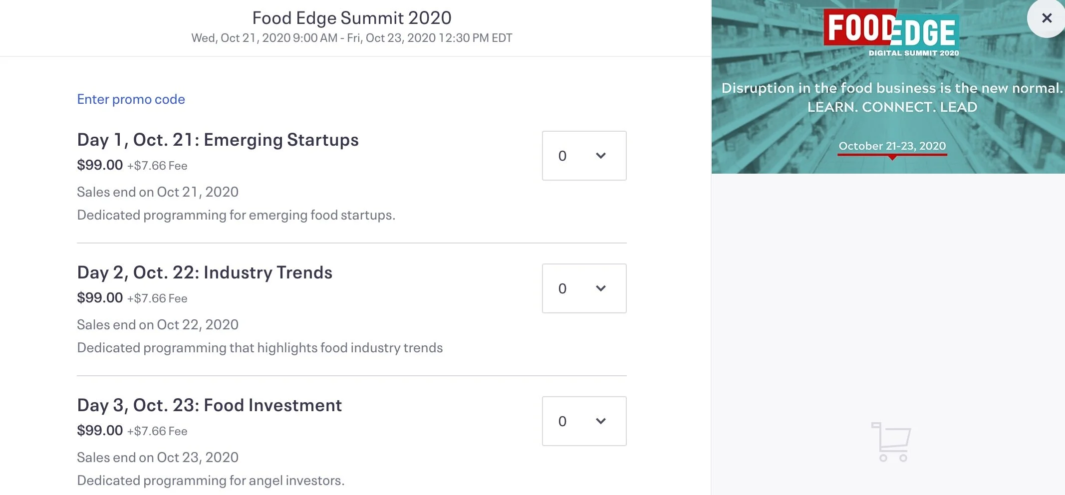 Food Edge 2020 takes place on October 21-23, 2020. The summit spans 3 mornings, each of which covers specialized topics: